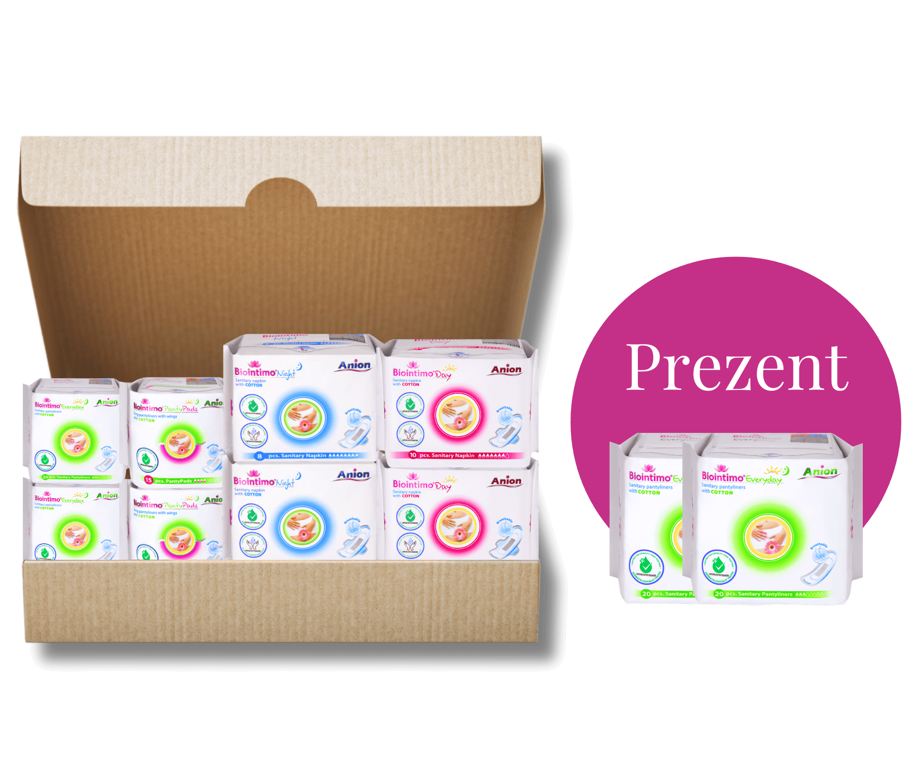 8 opakowań podstawowych wkładek higienicznych Biointimo ANION – wszystko w jednym pudełku. Chcesz mieć podwójny zapas małych opakowań wkładek? Wybierz ten box! Otrzymujesz po 2 opakowania każdego rodzaju, dzięki czemu możesz mieć wkładki w dwóch torebkach jednocześnie. Oszczędzasz pieniądze i nie musisz co miesiąc biegać do sklepu. Promocyjnym zestawem możesz podzielić się także z przyjaciółką.
