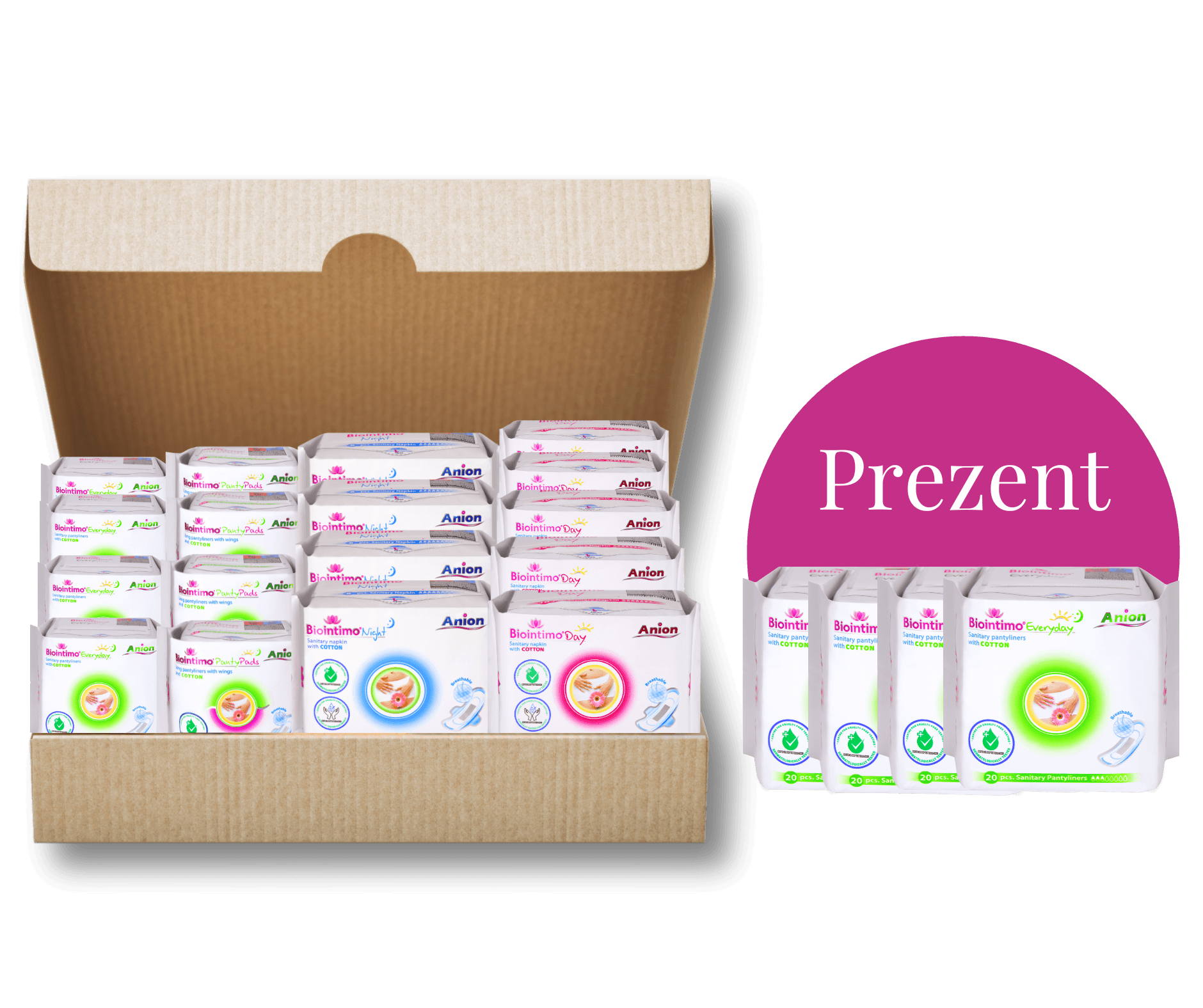 Zestaw podpasek menstruacyjnych i wkładek higienicznych Biointimo ANION wystarczający nawet na 3 miesiące – wszystko w jednym pakiecie w korzystnej cenie. Wkładki i podpaski Biointimo ANION zapewniają komfortową i bezproblemową menstruację, bez konieczności comiesięcznego biegania do sklepu.