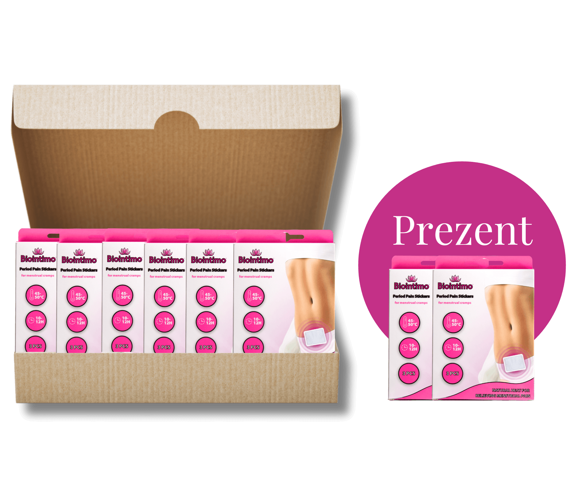 Biointimo menstruációs fájdalomcsillapító hőtapaszok a has és deréktájék 12 órás 45-50 C-os melegítésére! Vedd boxban kedvezőbb áron, hogy mindig legyen nálad egy mini hőtapasz a görcsök természetes csillapítására. Mellékhatások nélkül lazítja el az izmokat és enyhíti a fájdalmat Szülés utáni vagy felfázásos fájdalmakra is nagy segítség!